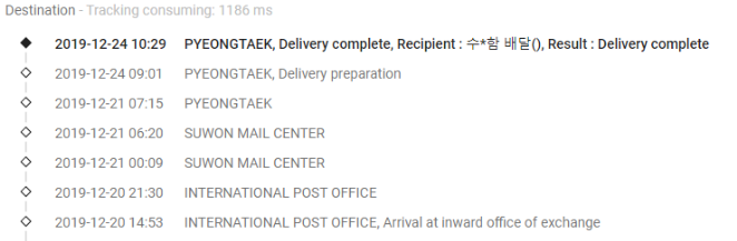최근 처음으로 겪은 알리익스프레스 오배송 상황인데, 몇달러 안되는 캠핑 용품을 11월쯤 주문하고 잊어버리고 있다 확인해보니 이미 12월 말에 Successful delivery 상태로 되어있다. 하도 이상해서 17track사이트에서 조회해보니