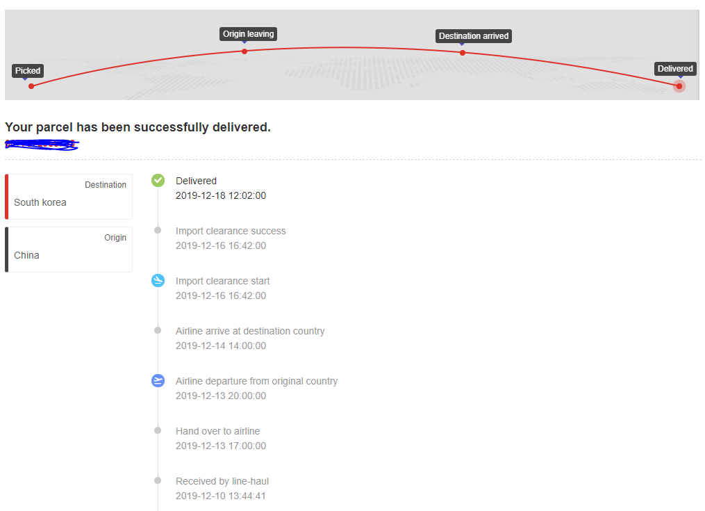 - 중국->한국 넘어오기 전 상황을 간단하게 알 수 있고, Depart from facility to service provider 이후는 아래 타 사이트에서 조회가 가능하다.