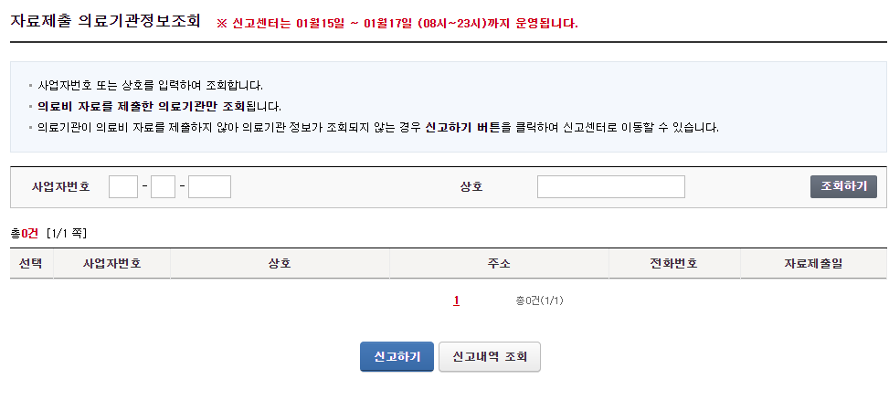--> 의료기관이 자료를 제출하지 않아 정보 조회가 안되는경우 신고센터를 통해 누락 사실을 신고할 수 있다.